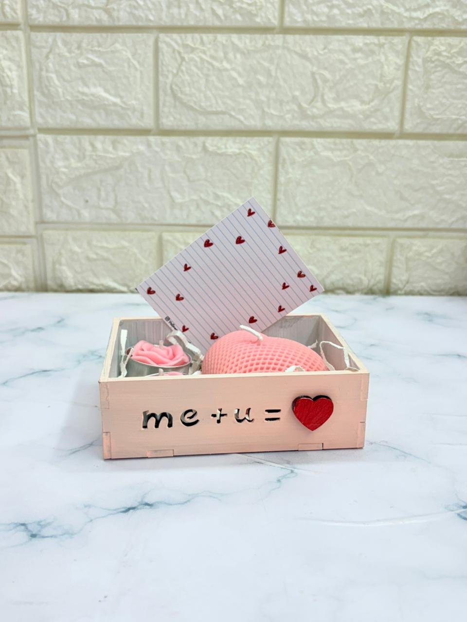 Valentine Gift Hamper VL7 | Tlight and Heart Candle combo | MDF Tray