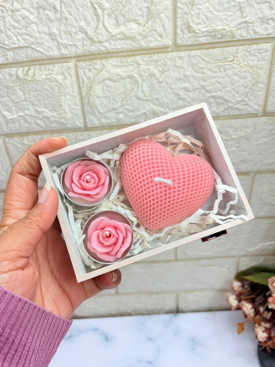 Rose Heart Candle | Pack of 3 Heart Candle combo | Window Box