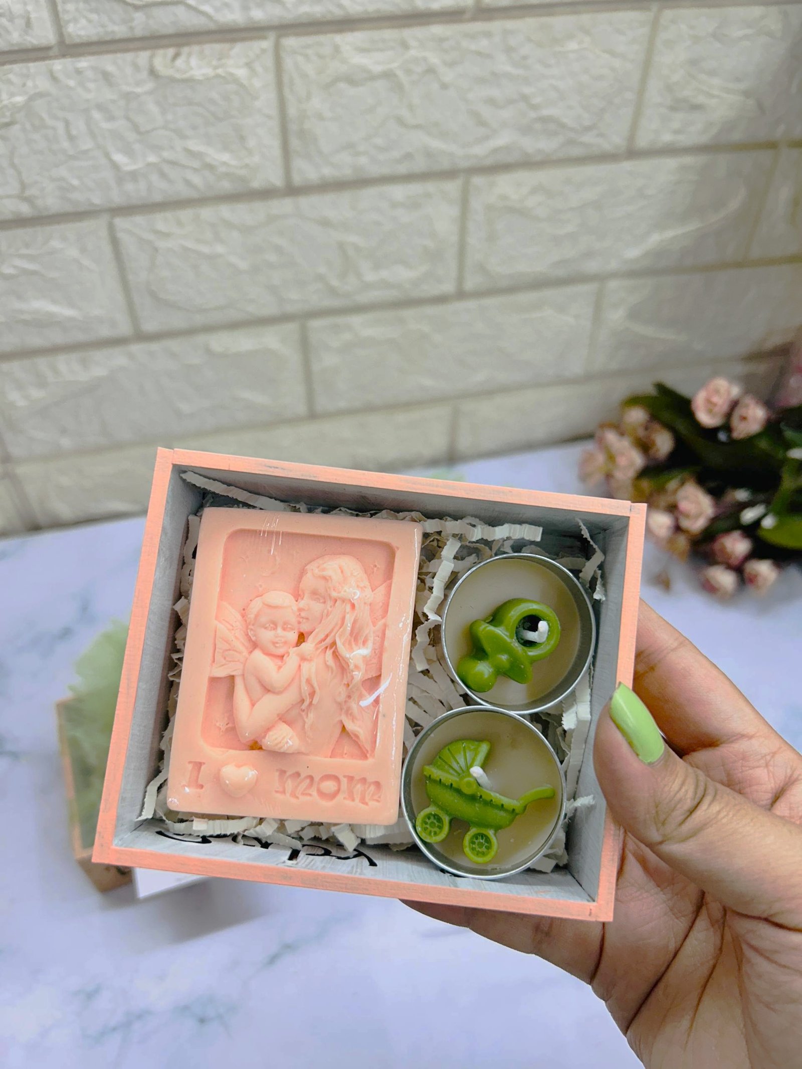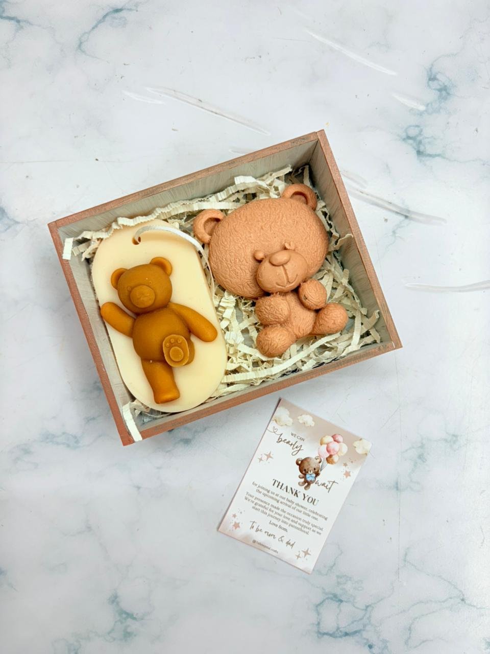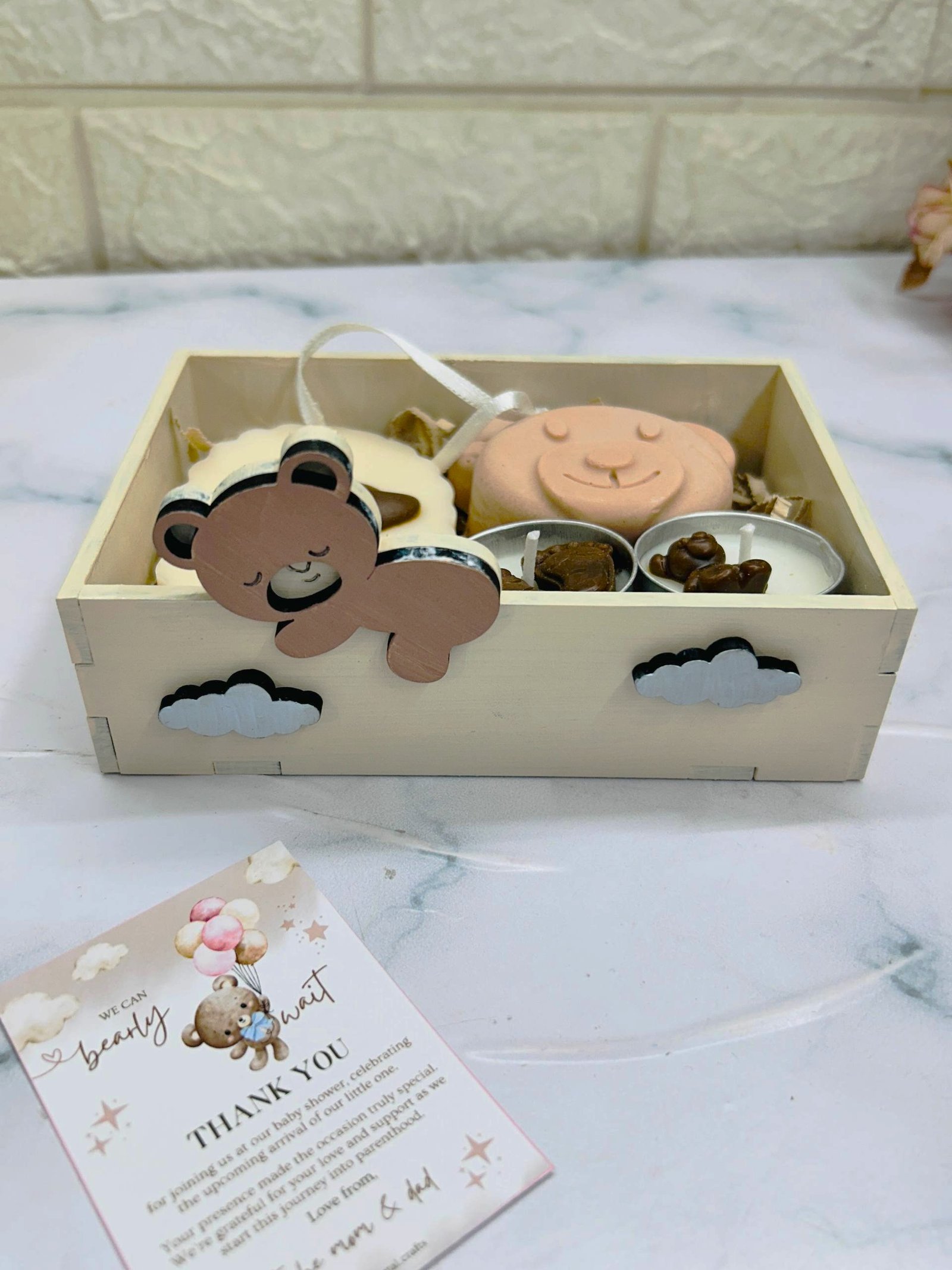 Teddy Theme Baby Shower Hamper | Soap, Sachet and Tlight combo | MDF Tray