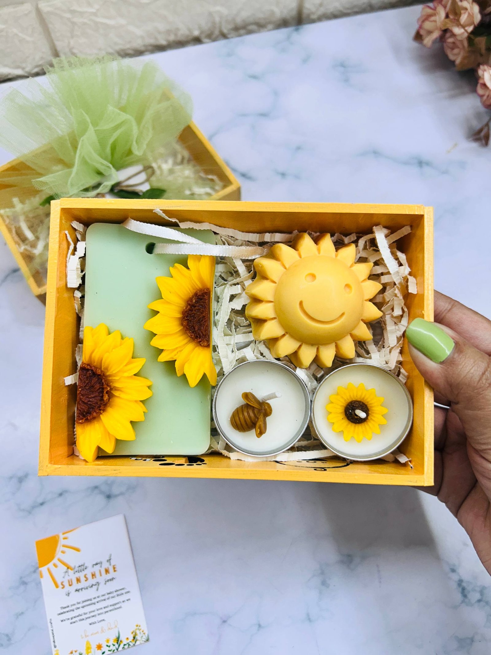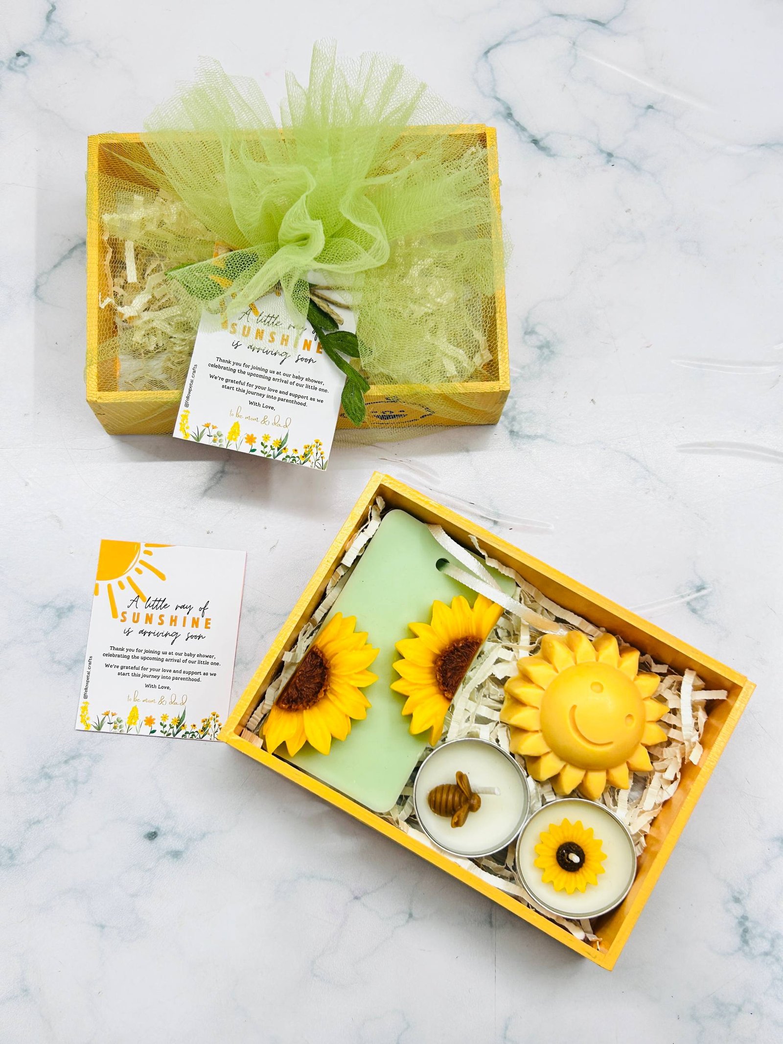 Sunshine Theme Baby Shower Hamper | Sachet, Soap and Tlight combo | MDF Tray