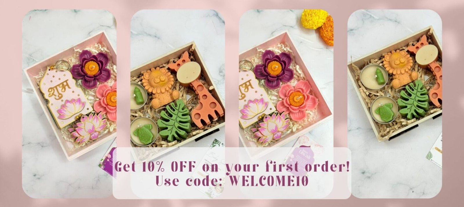 Jungle Theme Baby Shower Hamper | Soap, Candle and Tlight Combo | MDF Tray