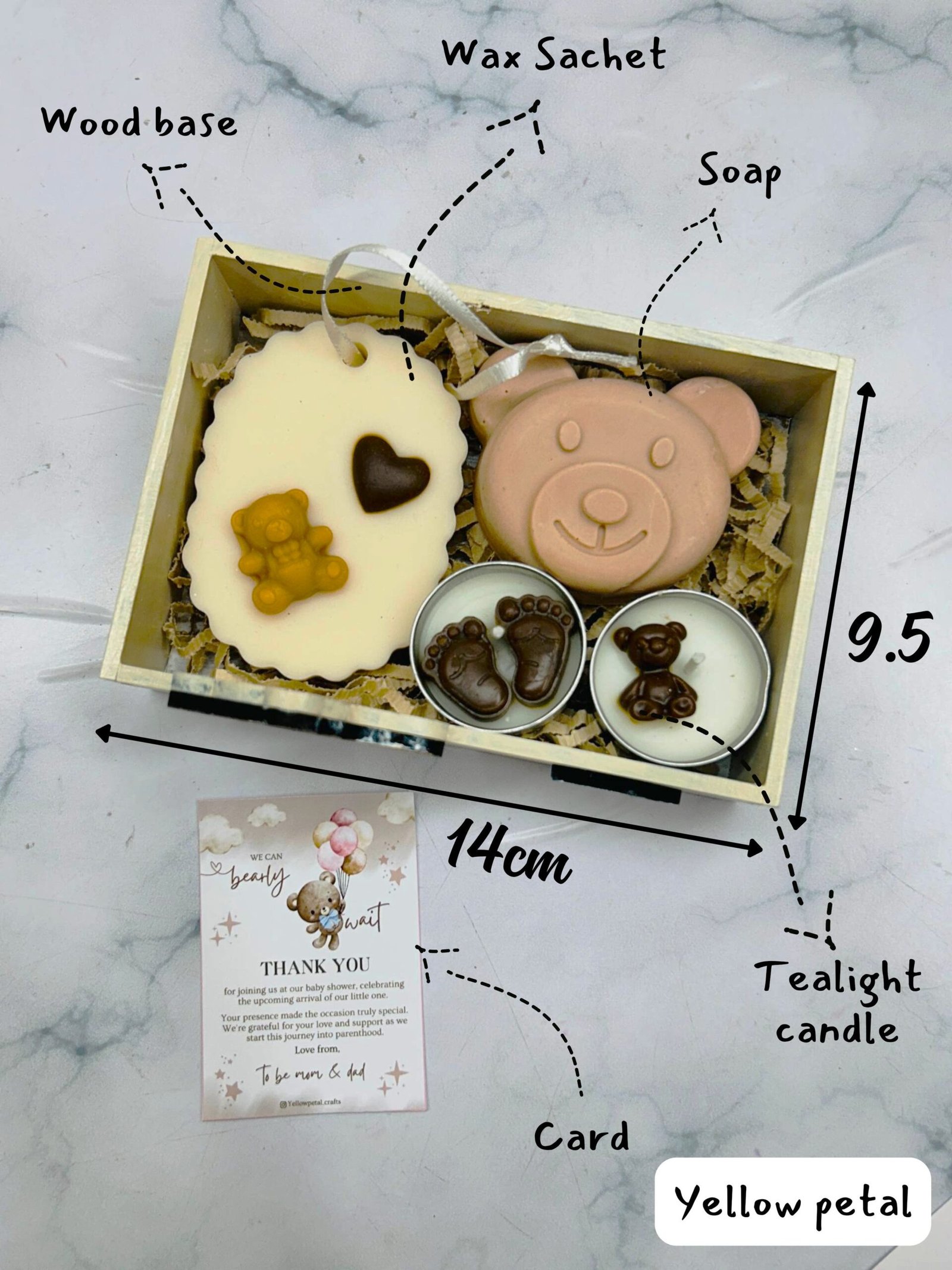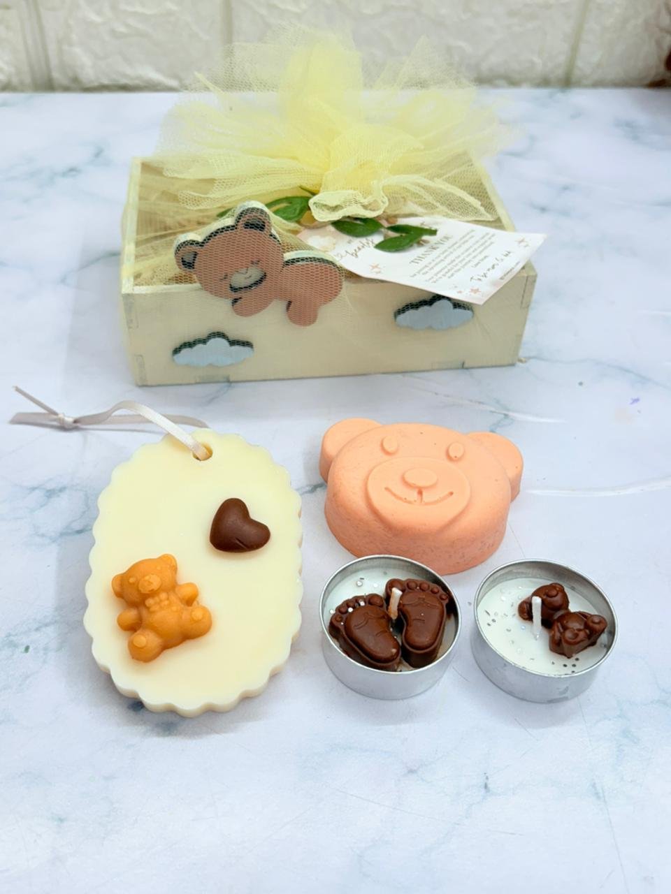 Teddy Theme Baby Shower Hamper | Soap, Sachet and Tlight combo | MDF Tray
