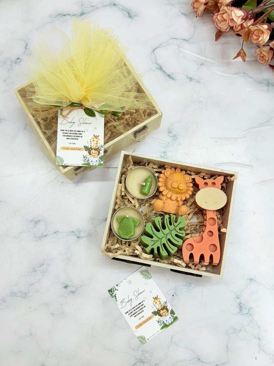 Jungle Theme Baby Shower Hamper | Soap, Candle and Tlight Combo | MDF Tray
